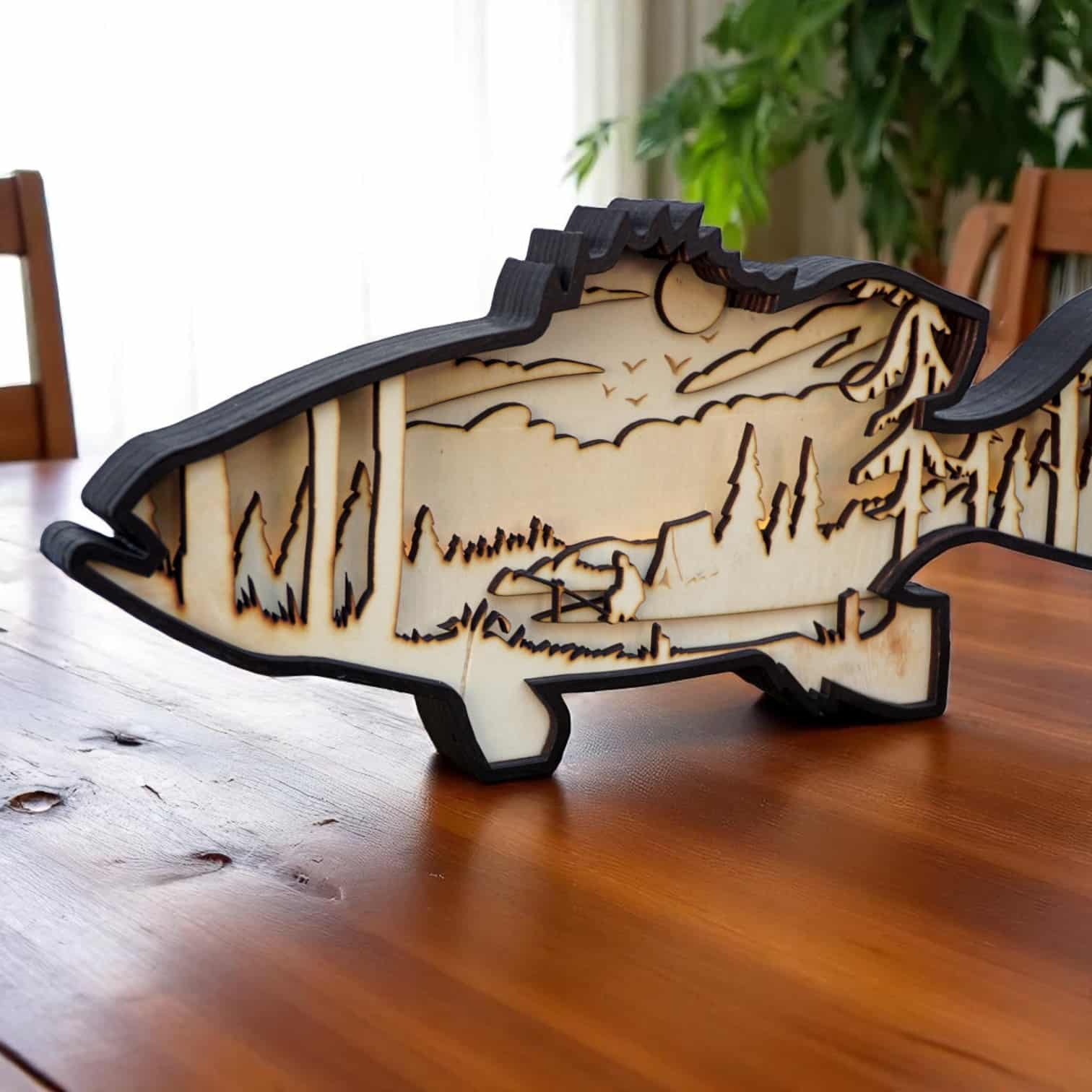Dieser handgefertigte Fisch aus Holz ist ein außergewöhnliches Designobjekt, das Handwerkskunst, Präzision und natürliche Werkstoffe vereint. Gefertigt aus mehreren sorgsam verleimten Holzschichten, bringt dieses Unikat durch jede einzelne Maserung ihre Einzigartigkeit zur Geltung.